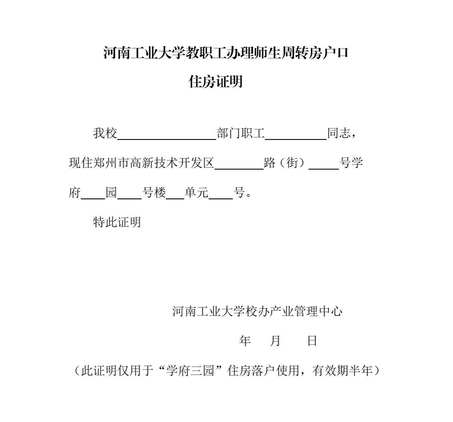 师生周转房落户住房证明